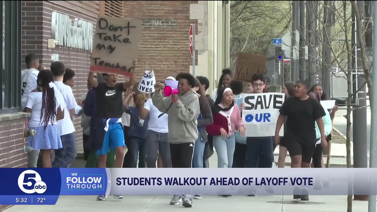 CLEVELAND — Since last Friday, more than 400 Cleveland Metropolitan School District teachers and paraprofessionals have been sent layoff notices. In response, dozens of students participated in a planned walkout to show support for those who will lose their jobs.