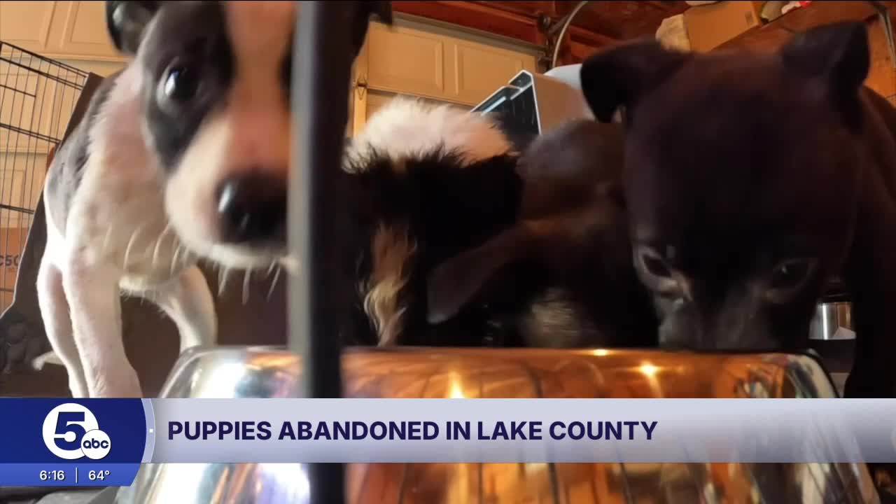 WILLOUGHBY, Ohio — Five puppies are safe and being cared for after being discovered abandoned in a dumpster at an apartment complex in Willoughby on Monday morning.