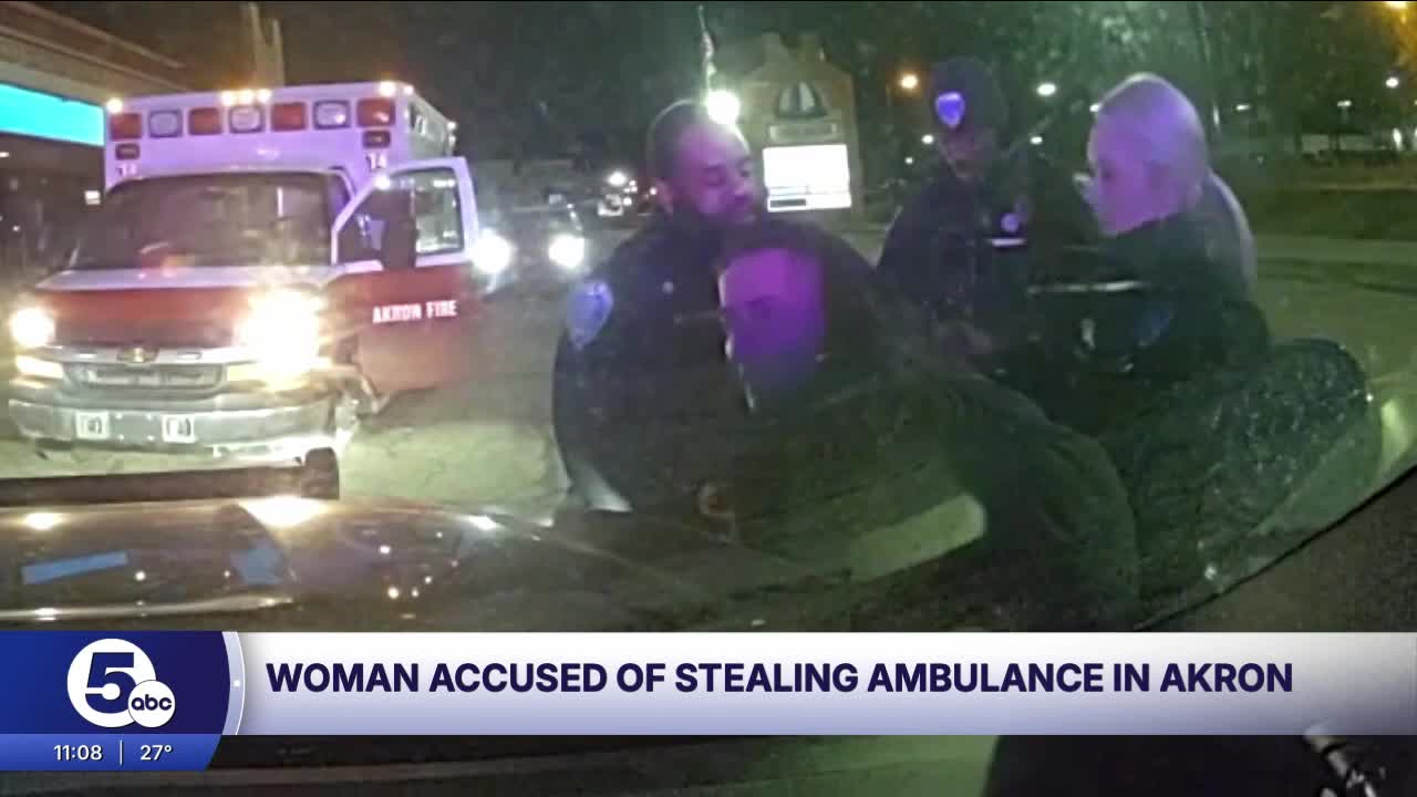 A woman was arrested after allegedly stealing an ambulance in Akron in the 1600 block of Brittain Road.