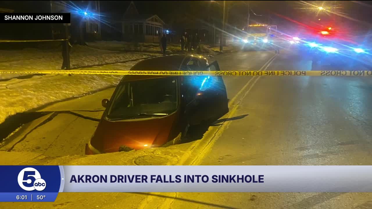 According to the City of Akron, the sinkhole is in the 1100 block of North Howard. Akron firefighters responded to the area around 9:41 p.m. on Friday after one vehicle bounced in and out of it and a second vehicle became stuck.