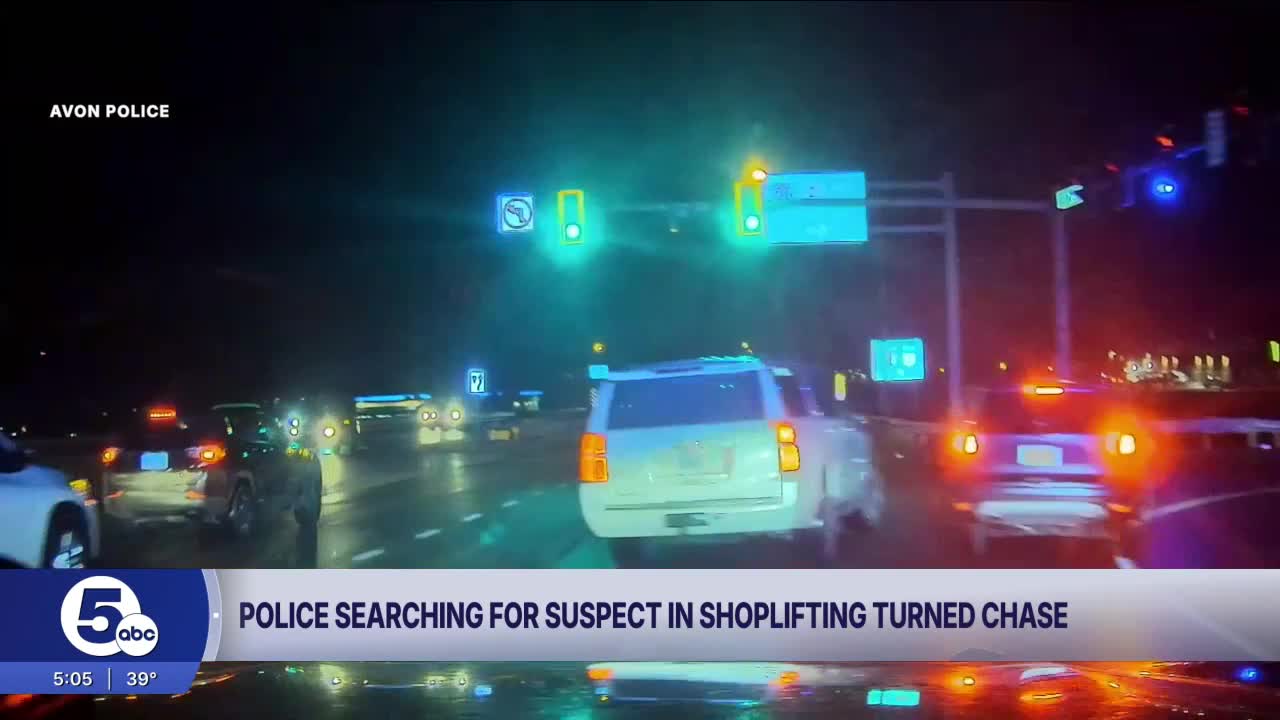 AVON, Ohio — A shoplifting case in Avon escalated when the suspects sped away in a white Chevrolet Suburban and nearly hit a police officer.