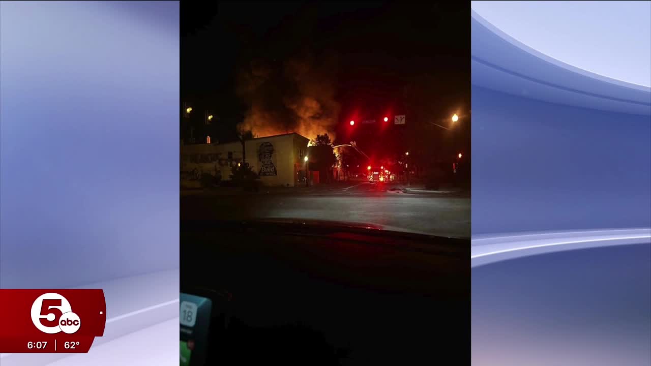 A News 5 viewer sent in photos of the large, red-hued smoke coming from a building. Flames of fire could also be seen.