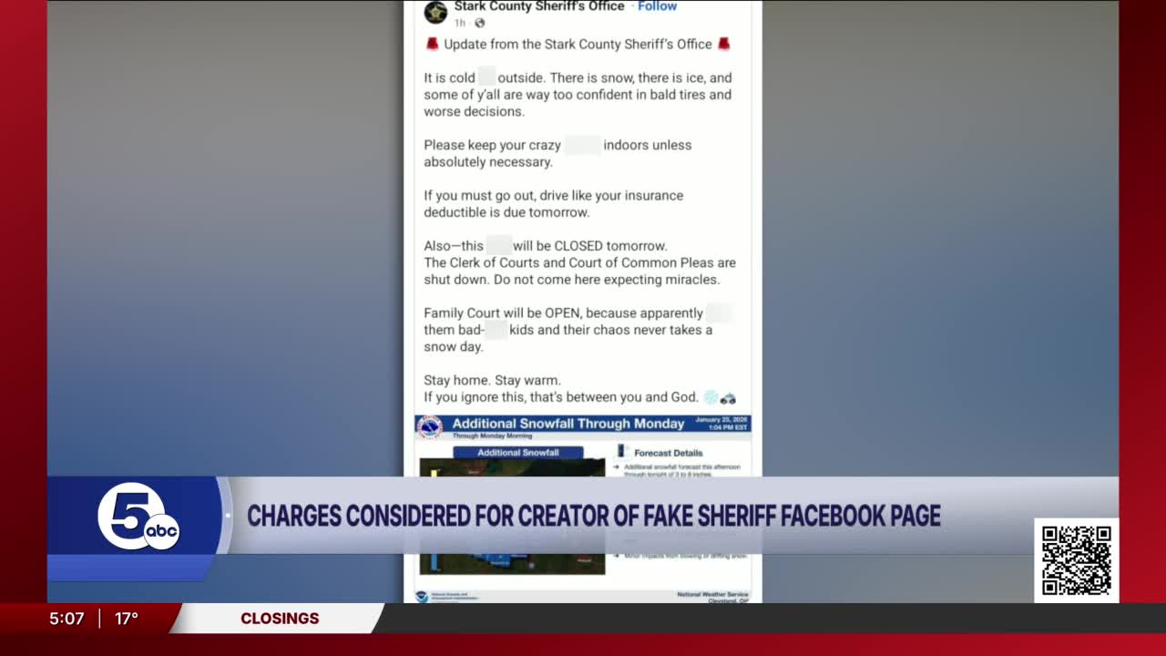 Stark County Sheriff Eric Weisburn said he is considering charges against someone who created a fake Facebook page impersonating the sheriff's office.