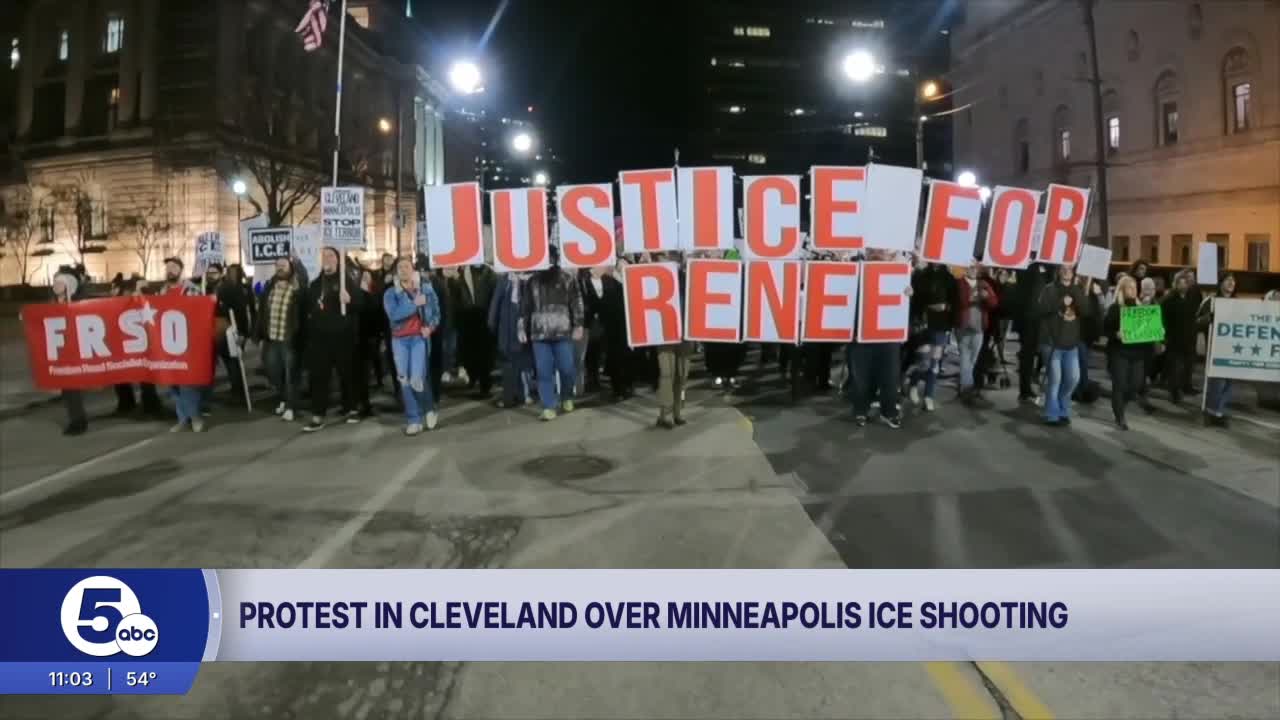 CLEVELAND — On Thursday, dozens gathered for a protest on the corner of Lakeside and East 9th Street in Cleveland following the death of 37-year-old Renee Nicole Good.