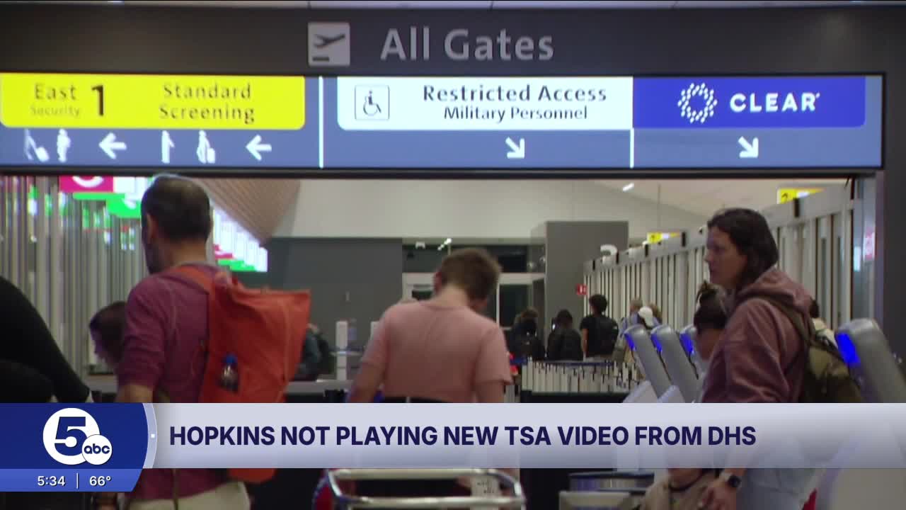 In a statement to News 5, a Hopkins spokesperson said that "CLE cannot display the Department of Homeland Security video. As a publicly operated facility, CLE is not permitted to display content that could be viewed as political or partisan."