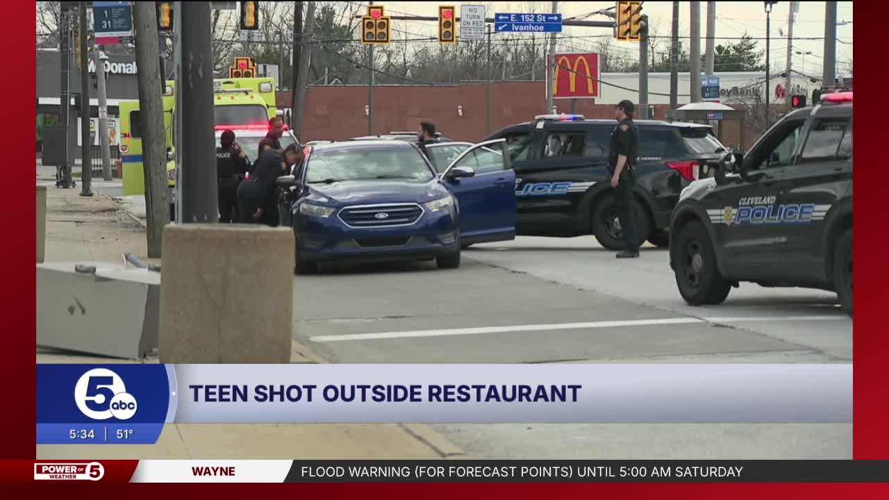 CLEVELAND — One person is in custody after a shooting in a McDonald’s parking lot on Saturday that left a 17-year-old injured.
