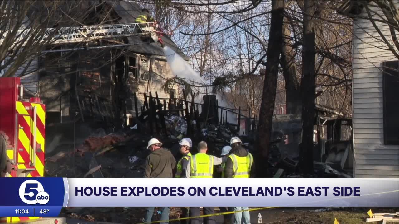 CLEVELAND — The Cleveland Division of Fire responded to a chaotic scene Friday afternoon on the city's East Side after a home exploded and the houses on either side of it caught fire.