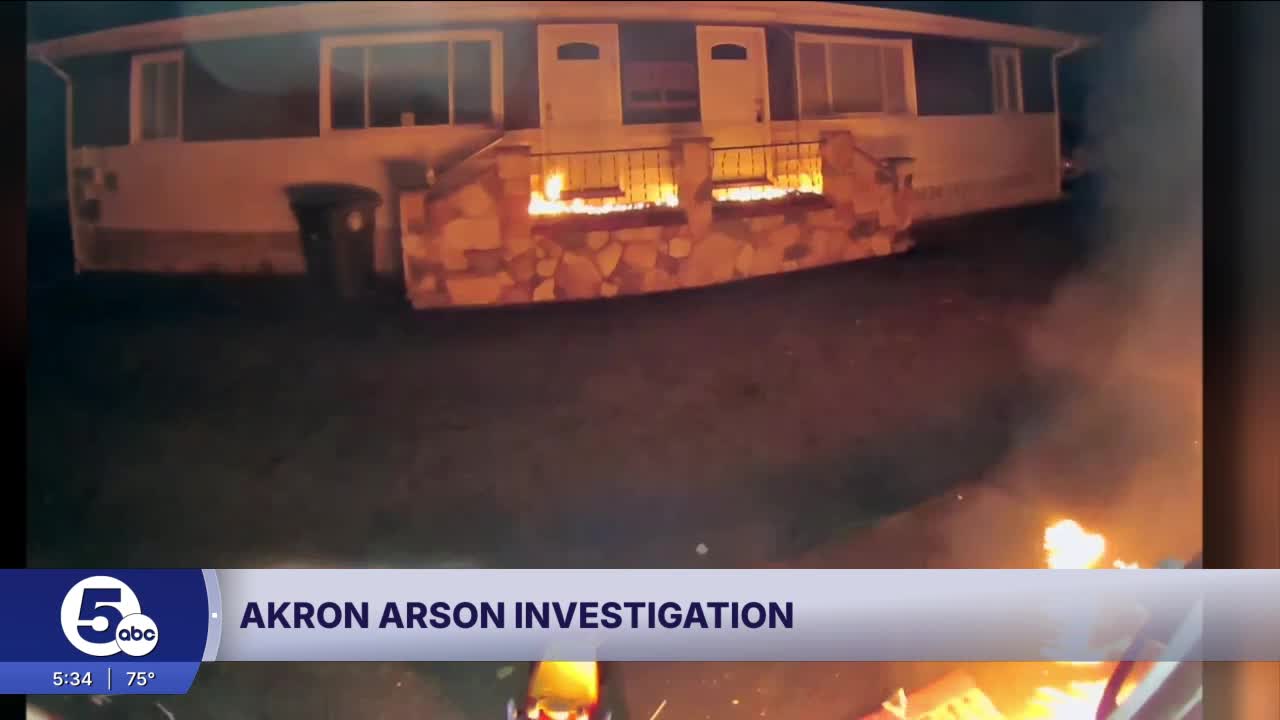 AKRON, Ohio — Akron firefighters responded to the 1100 block of Tonawanda Avenue early Monday morning after an unknown person set fire to the porches of two different houses.