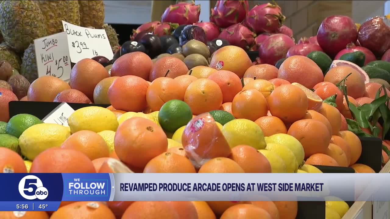 CLEVELAND — The renovated West Side Market produce arcade quietly opened its doors Friday morning, welcoming shoppers to a space that blends history with modern upgrades.