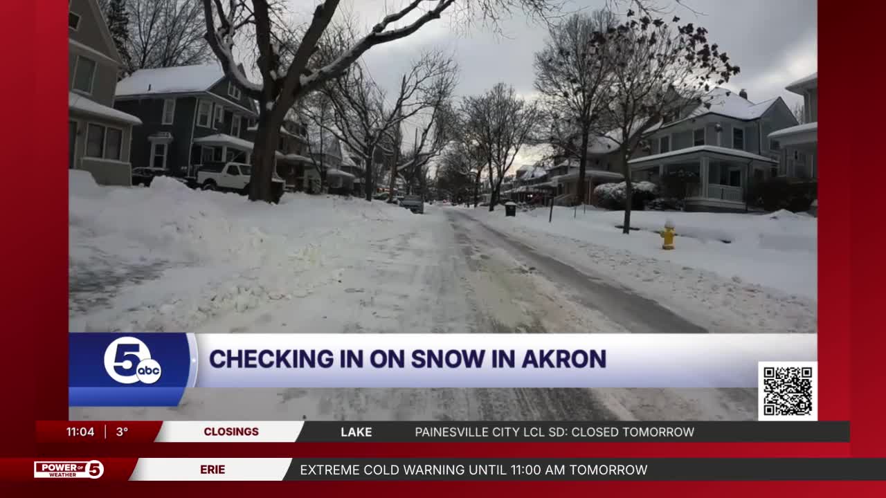 For Akron, the city's Public Works Manager, Jon Malish, told News 5 he hopes all the roads will be clear by 6 a.m. on Tuesday.