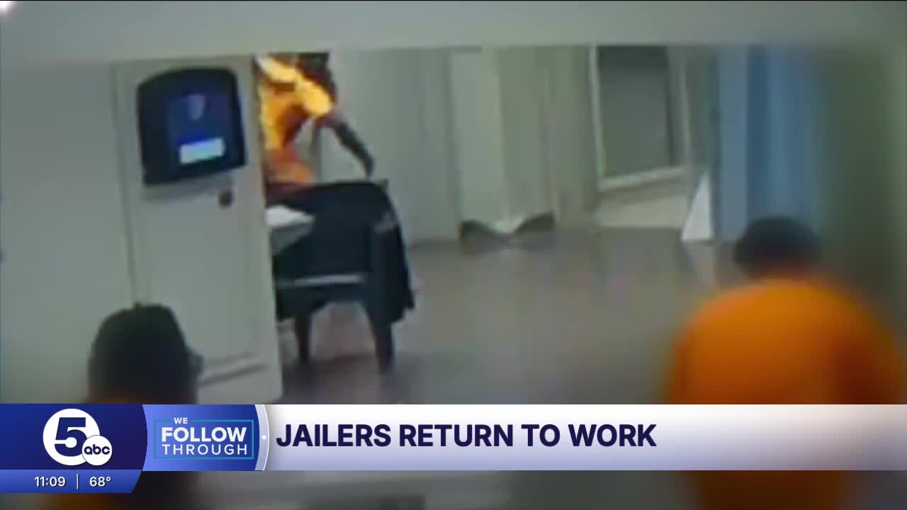 CLEVELAND — Two Cuyahoga County corrections officers accused of taking part in a “fight club” with inmates last year are back on the job after serving suspensions.