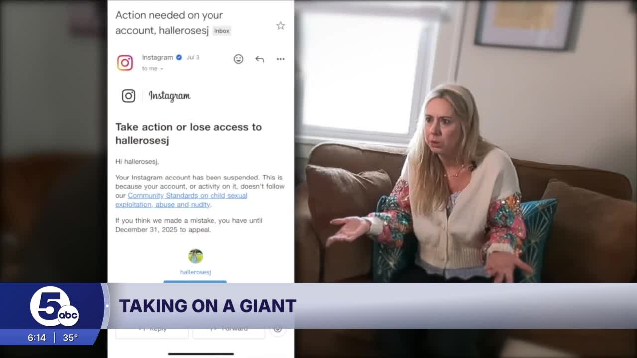 CLEVELAND — A Cleveland woman said a major company made a major mistake that forced her to lose business, and she’s not the only one. Meta, which owns Facebook and Instagram, took down her pages, and she wants others to hear what happened.