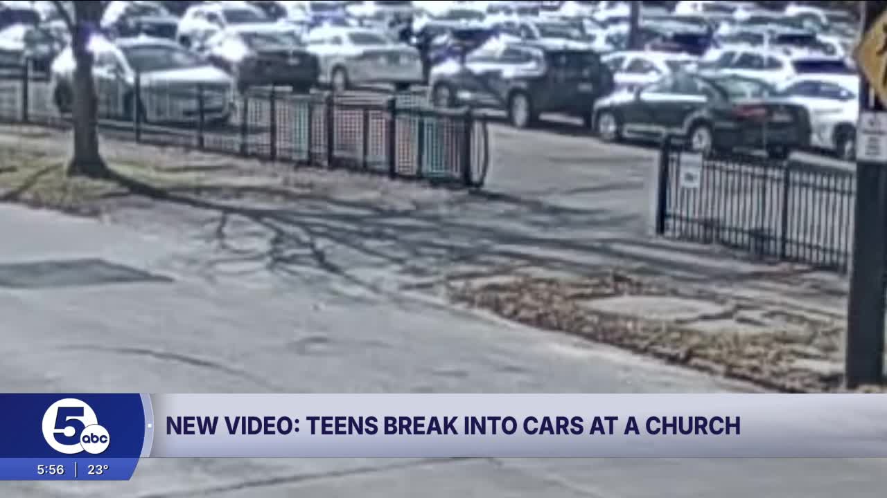 Newly released surveillance video shows suspects breaking into several vehicles at Olivet Institutional Baptist Church on Quincy Avenue in Cleveland.