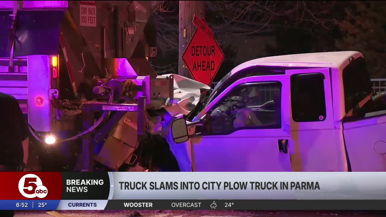 The plow truck driver was transported to University Hospitals in Parma for minor injuries.
