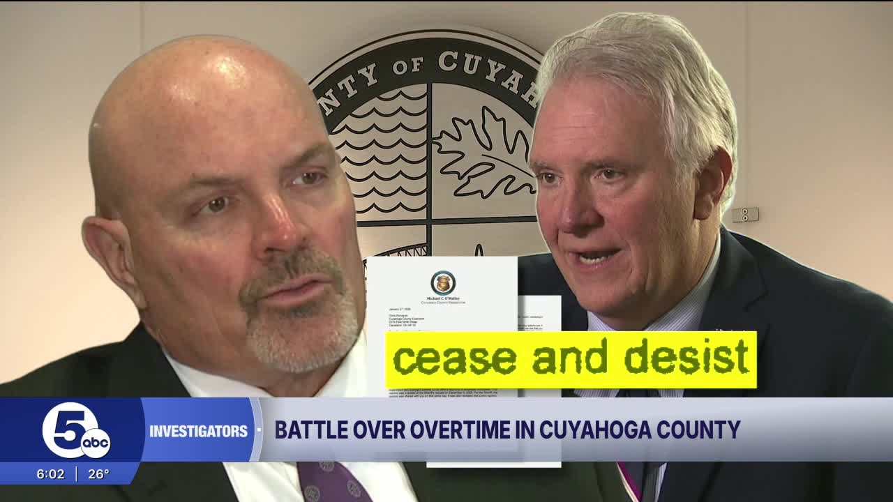 CLEVELAND, Ohio — Cuyahoga County Executive Chris Ronayne says overtime in the sheriff’s department is being rubber-stamped and wants to rein in the sheriff. Now, the sheriff is threatening to file a lawsuit.