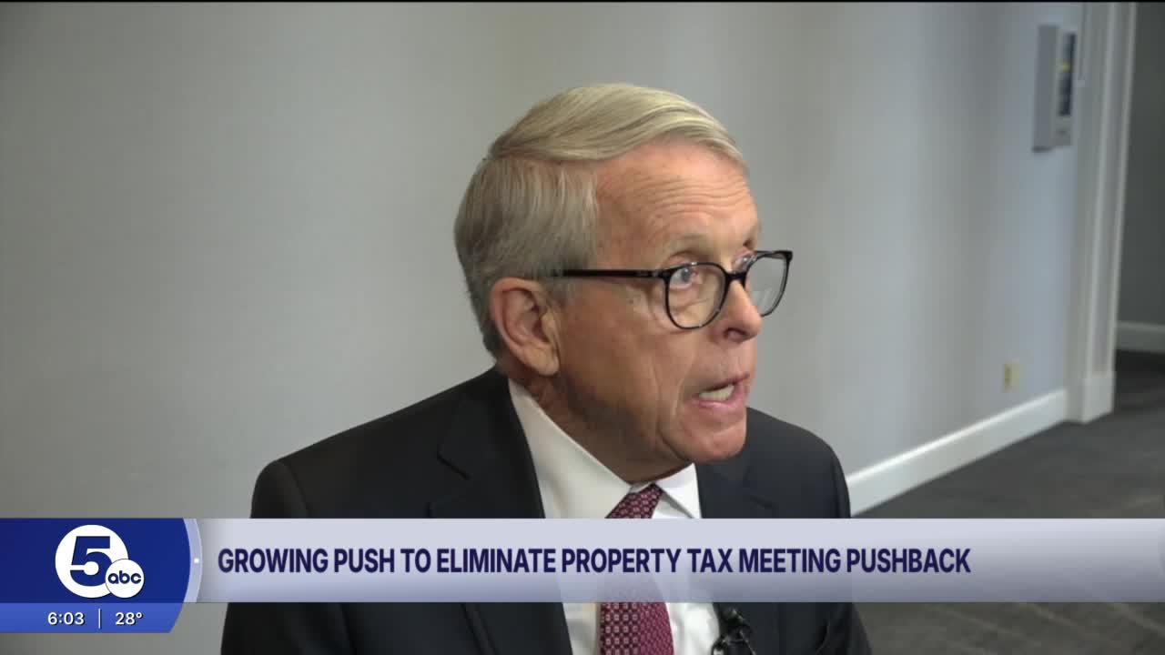 CHESTER TOWNSHIP, Ohio — A growing movement to eliminate property taxes in Ohio is gaining momentum, but Gov. Mike DeWine warned reporters Thursday the change could drive up the state sales tax.