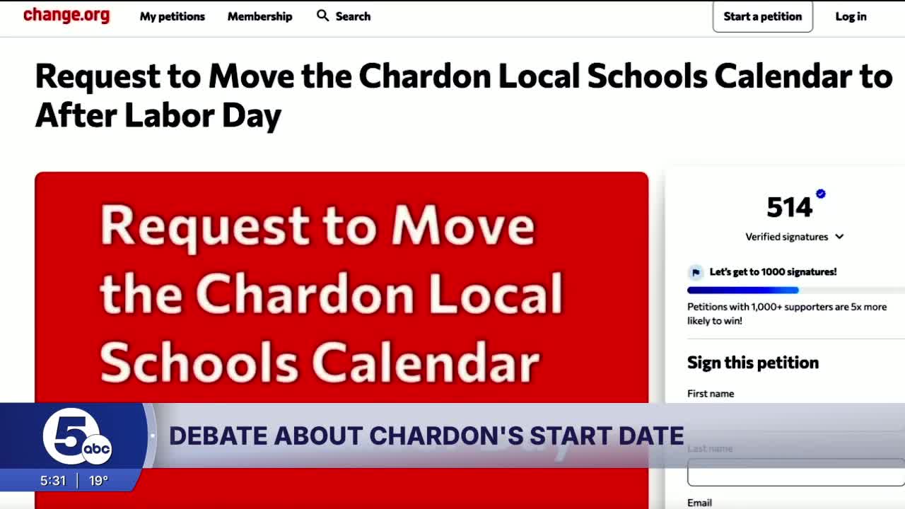 CHARDON, Ohio — More than 500 signatures and counting are advocating for Chardon Local Schools to move the first day of classes from August to after Labor Day.