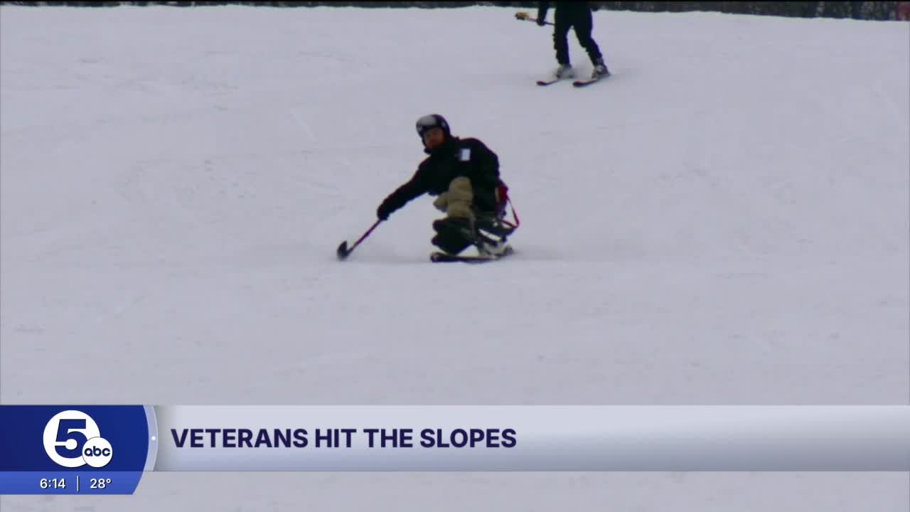 With the help of the specialized equipment, Cleveland veterans put on their goggles at Snow Mills in Mansfield and traveled down the slopes.