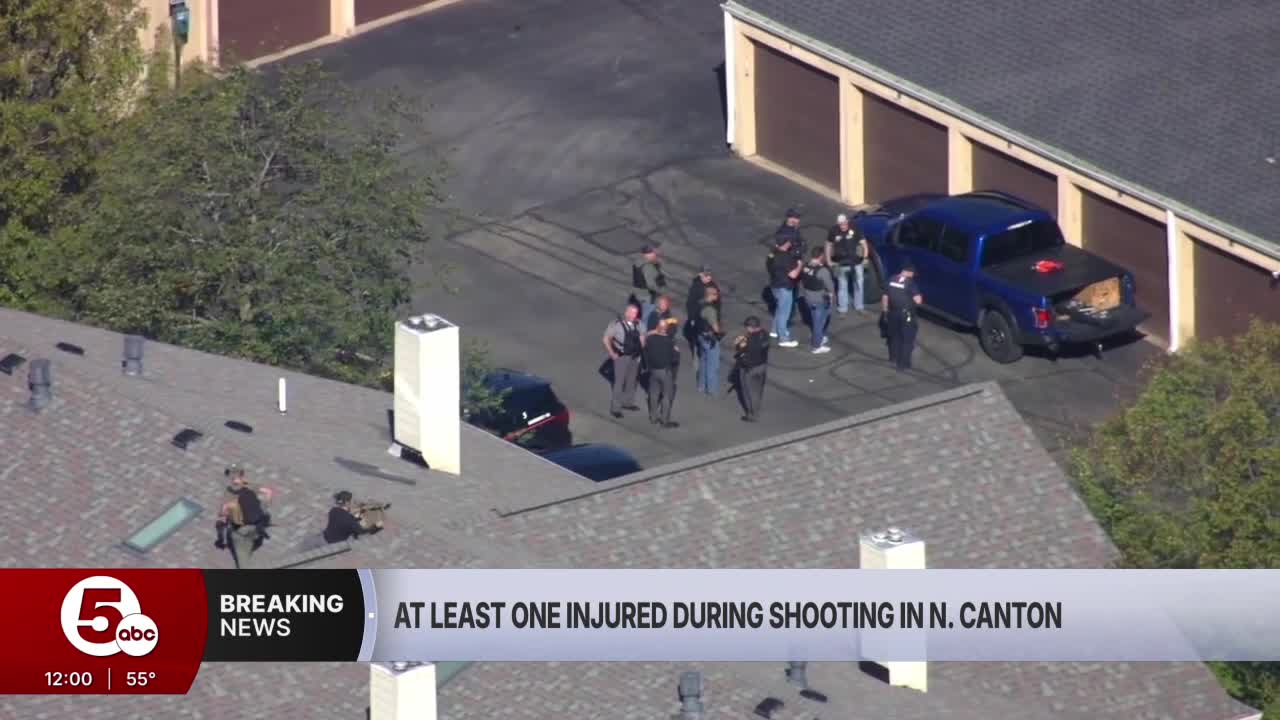 NORTH CANTON, Ohio — A suspect is in custody after law enforcement agents surrounded a North Canton apartment building where a woman was shot and police were fired on while rescuing her.