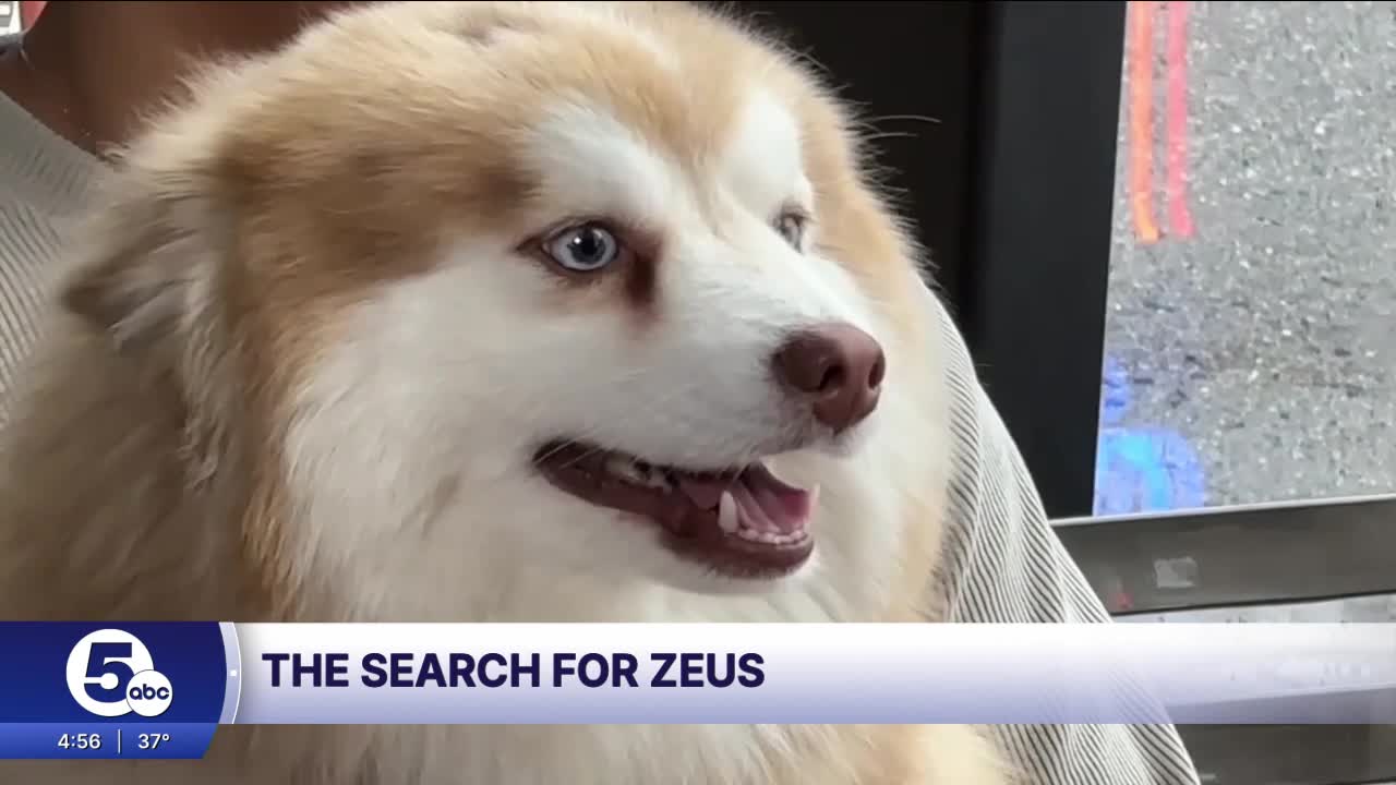 AKRON, Ohio — After running away from his Akron home and being missing for months, a Pomeranian Husky named after the Greek god of sky and thunder recently had a heartwarming reunion with his owners, Rose Baun and Gio Diago.
