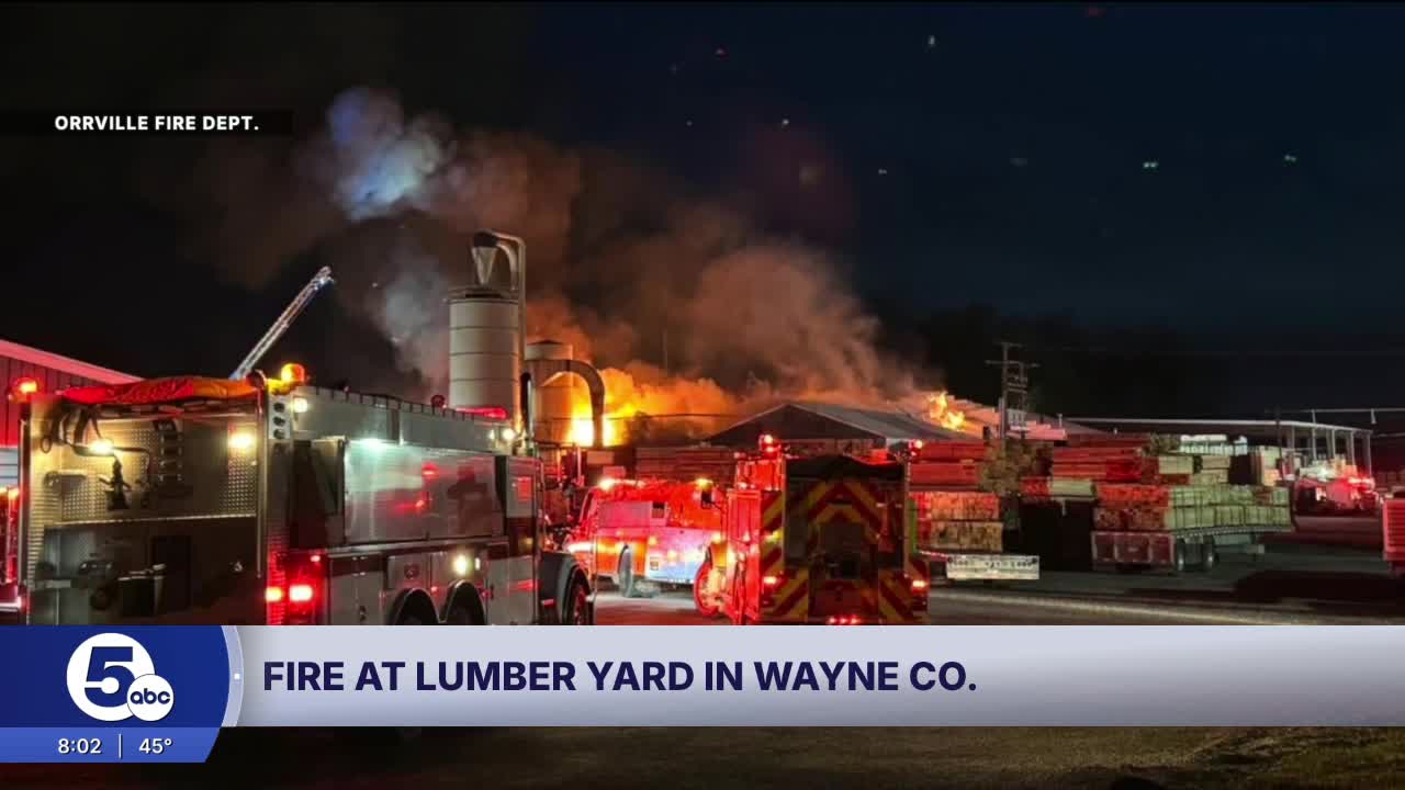 Multiple fire crews spent Saturday night battling flames at a lumber yard in Wayne County, according to the Orrville Fire Department.