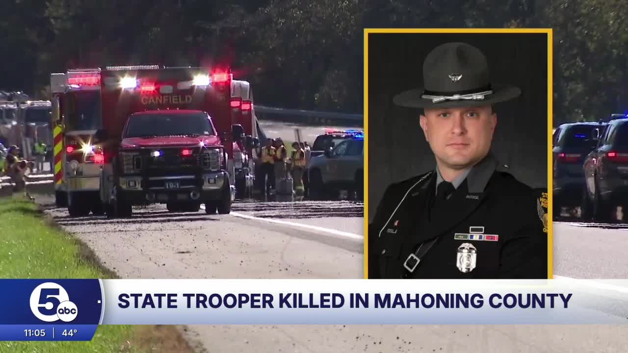 The Ohio State Highway Patrol honored a trooper who was killed while in the line of duty Thursday morning in Canfield, Ohio, about 20 minutes southwest of Youngstown, according to OSHP.