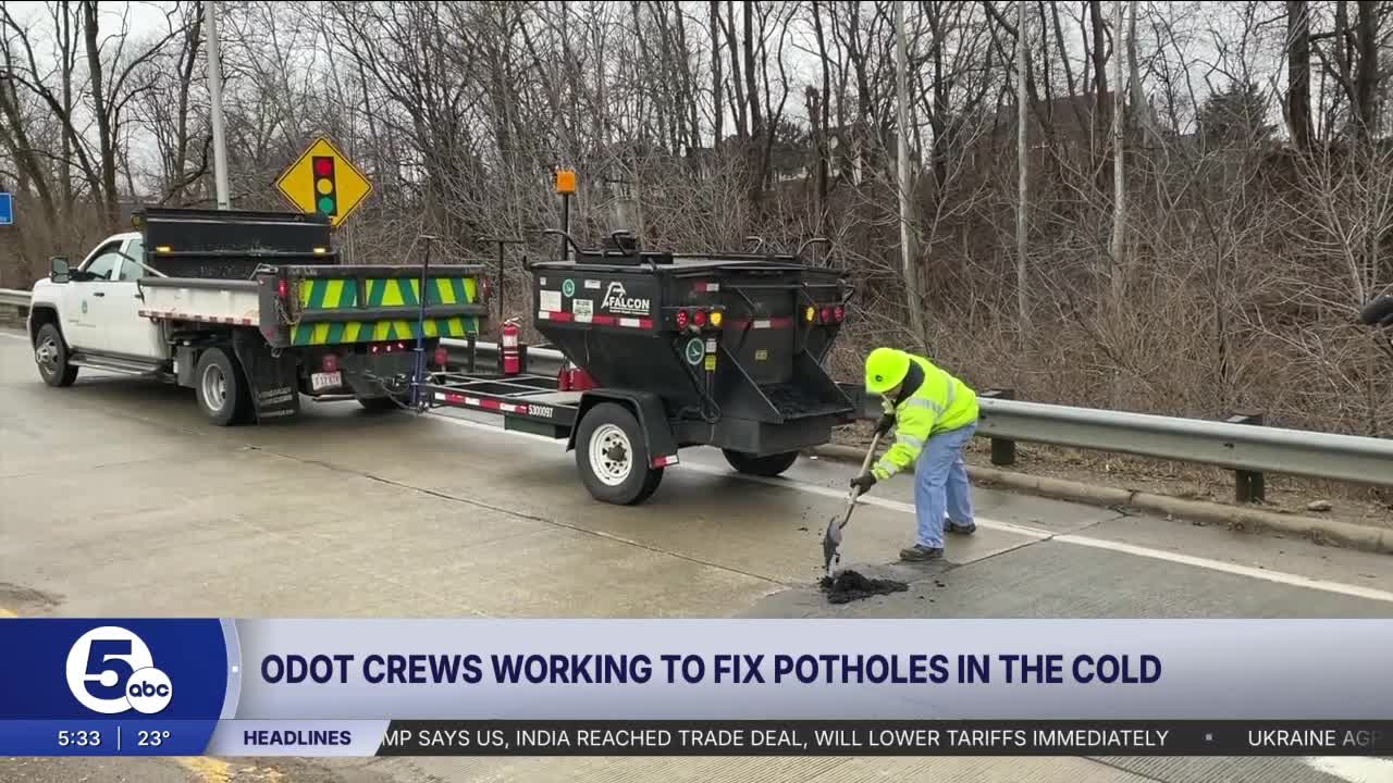 "I talked with one of our managers," Isaac Hunt with ODOT District 12 said. "He said he went out to try to fix a pothole and there was a bunch of ice in the bottom of the pothole. Then, they're struggling to get the ice out, you can't really put the material in. It's just a challenge that our maintenance crews are facing. They're doing their best to fix things and getting creative with their solutions."