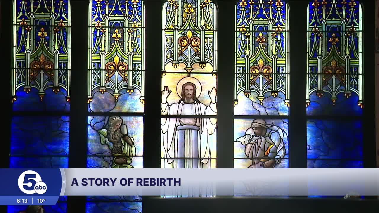 AKRON, Ohio — A restored Tiffany stained-glass window damaged in a fire at the historic St. Paul's Episcopal Church in Akron is the centerpiece of a new exhibition at the Akron Art Museum.