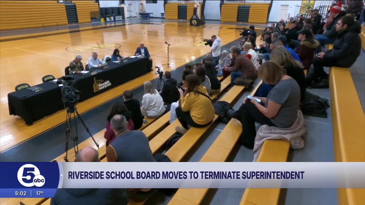PAINESVILLE TOWNSHIP, Ohio — Dozens of parents and community members packed the Riverside Local Schools high school field house for a rare Monday afternoon board meeting as the district moves forward with terminating its superintendent.