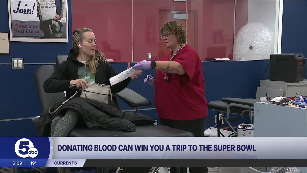 The American Red Cross says those who come to give through Jan. 25 will be automatically entered for a chance to win a trip for two to Super Bowl LX in the San Francisco Bay Area.