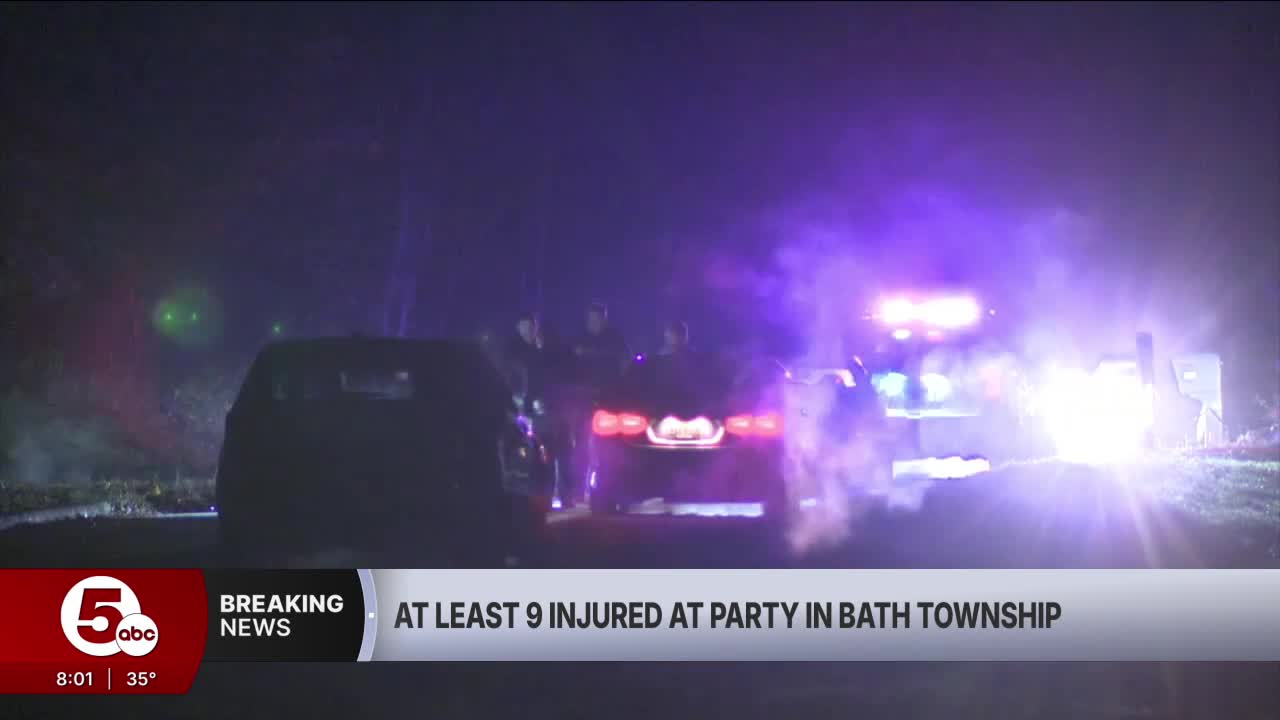 BATH TOWNSHIP, Ohio — Police are investigating a shooting at a large party at an Airbnb in Bath Township that left nine people injured.