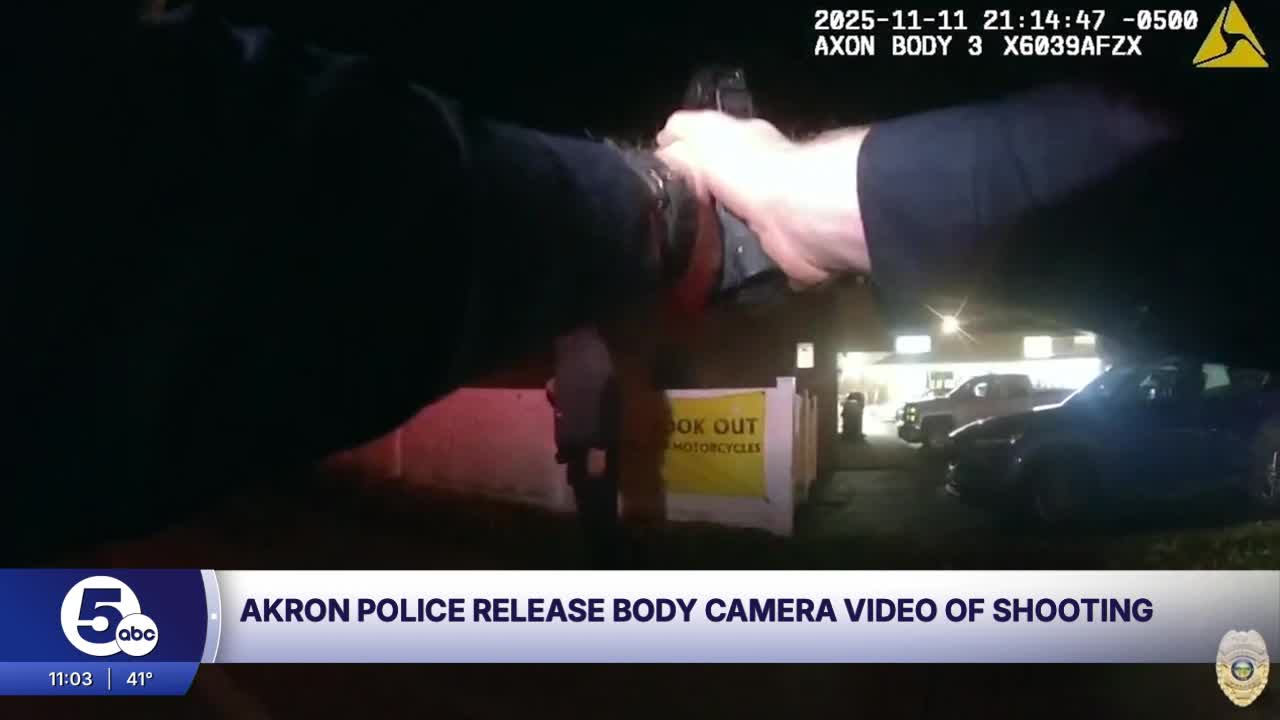 AKRON, Ohio — Akron Police have released body camera footage from Nov. 11, where an officer made a "split-second decision" to shoot a man who allegedly had a gun on his person.