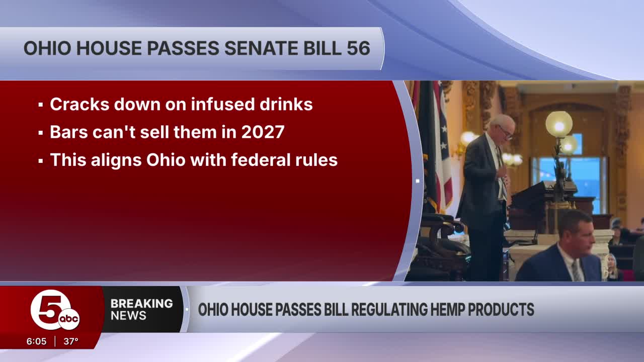 Senate Bill 56 still needs to pass the Ohio Senate, and then the governor must sign it into law. But if that happens, intoxicating hemp and THC beverages would only be allowed to be sold at licensed dispensaries with a 5-milligram THC cap per serving for beverages. Through 2026, stores could continue selling the items. But beginning in January 2027, gas stations, bars, and grocery stores would no longer be allowed to carry THC products.