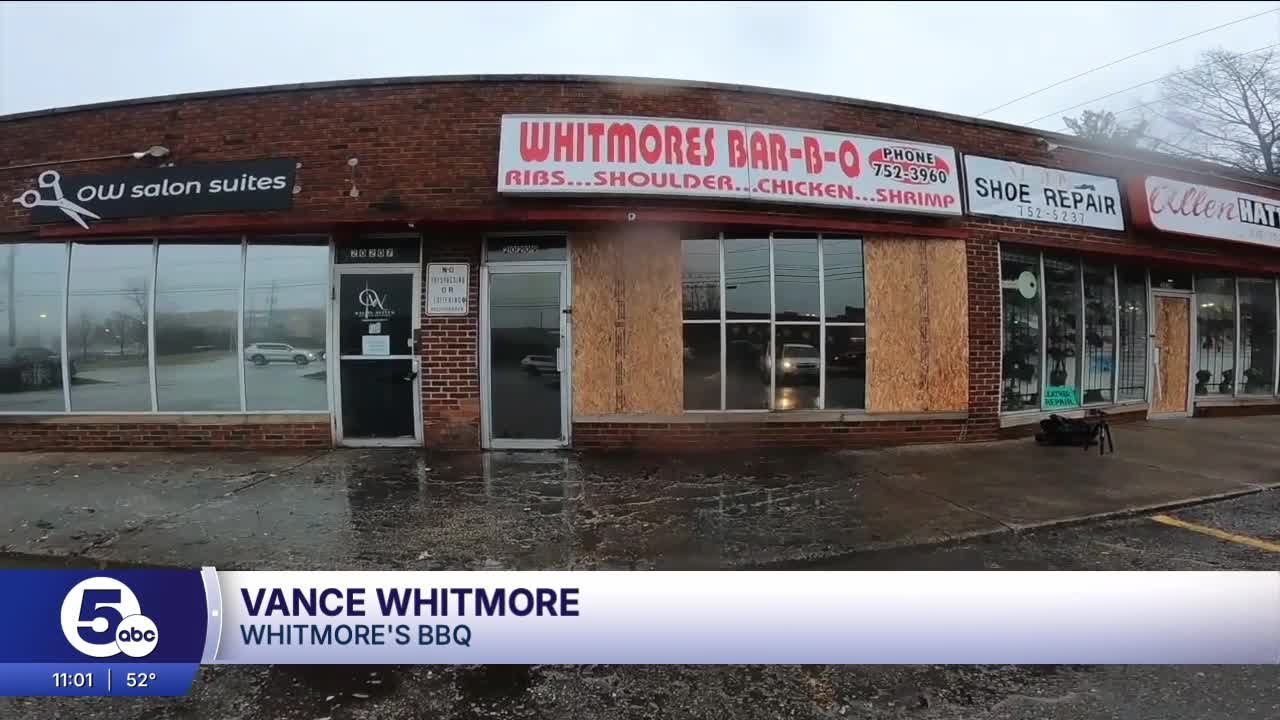 WARRENSVILLE HEIGHTS, Ohio — Whitmore's BBQ has been serving the community since 1980 in Warrensville Heights, but unfortunately, the business is temporarily closed as an early Tuesday morning fire set it ablaze.