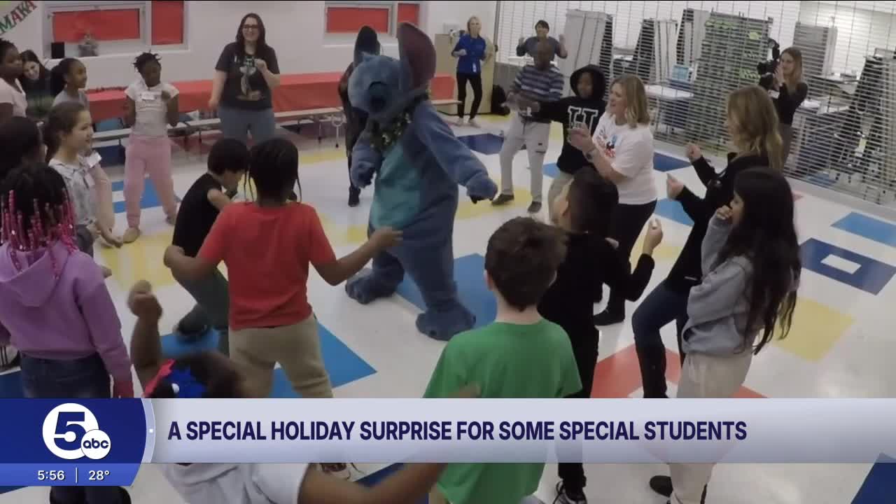 With the movie franchise based in Hawaii, Stitch shared the Aloha spirit with children at Halle. He gifted each student a traditional Hawaiian lei that came straight from the Aloha State, made of fresh orchids and Ohio’s state flower, the red carnation, as a nod to Disney’s stop in Cleveland.