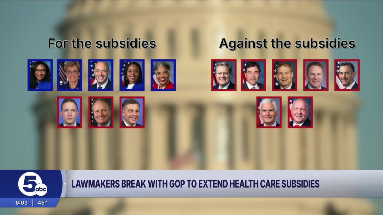 COLUMBUS, Ohio — Three Republican U.S. representatives from Ohio defied President Donald Trump and joined the Democrats in voting to restore expired Affordable Care Act subsidies.