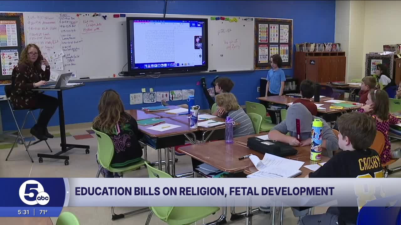 COLUMBUS, Ohio — Ohio Republican lawmakers have introduced new bills that would promote religious instruction in public school classrooms: one to add more "positive" impacts of Christianity and the other to require screenings of a GOP-supported fetal development video created by an anti-abortion group.