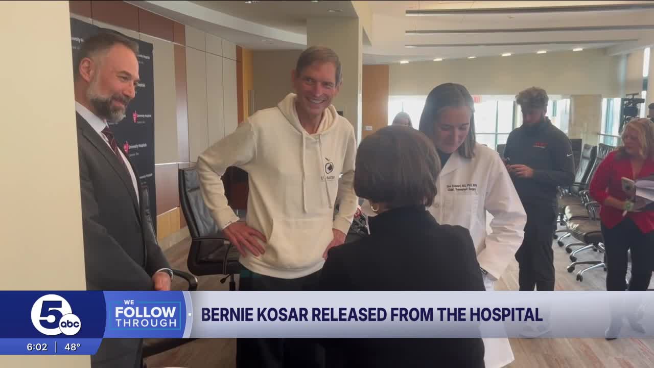 CLEVELAND — As he prepared to depart University Hospitals one week after undergoing a successful liver transplant, Bernie Kosar told reporters that just 10 weeks ago, he didn't think he'd make it to his 62nd birthday, which he'll celebrate tomorrow.