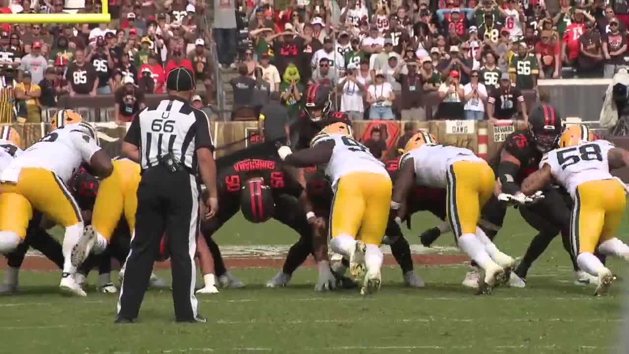 On the ensuing series, the Browns came up with their first takeaway of the season with 3:18 remaining when Grant Delpit picked off Love's pass and returned it 25 yards to the Packers 4.