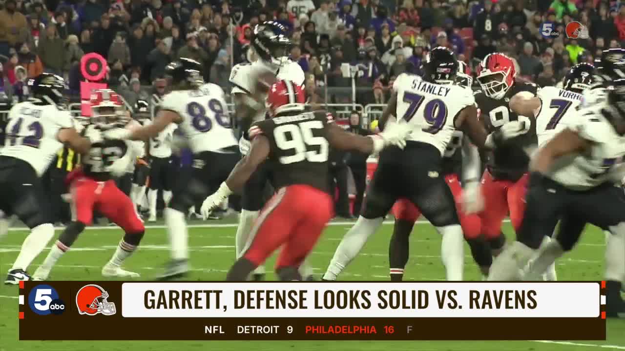 In the first quarter of the game, with the Ravens in the red zone and pushing toward the end zone, Garrett slowed Baltimore by sacking Lamar Jackson on third-and-goal to force a field goal.