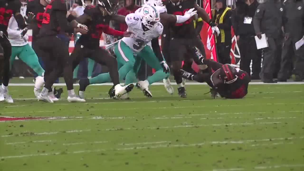 Cleveland's defensive score gave them a strong 24-6 lead immediately in the third quarter and the defense kept their foot on the gas, forcing a three-and-out, highlighted by the third-down stop that saw defensive end Myles Garrett snap a three-game streak without a sack as Garrett took down Tagovailoa for a loss of seven and his fifth sack of the season.