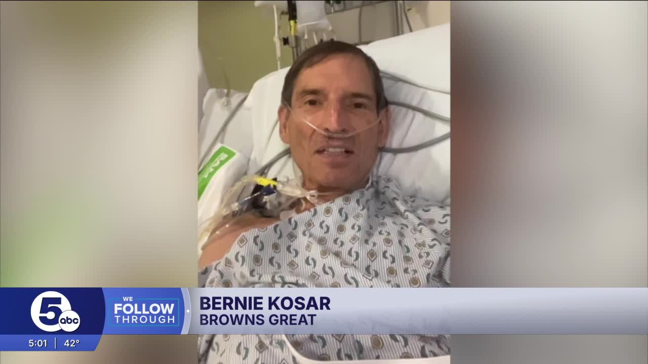 CLEVELAND — A day after receiving a long-awaited liver transplant, Bernie Kosar spoke with News 5's John Kosich and said he feels "a thousand percent better than yesterday." Kosar and Kosich discussed Kosar's health, the identity of the donor, the mixed emotions of receiving a donor organ, and being prepared for this moment.