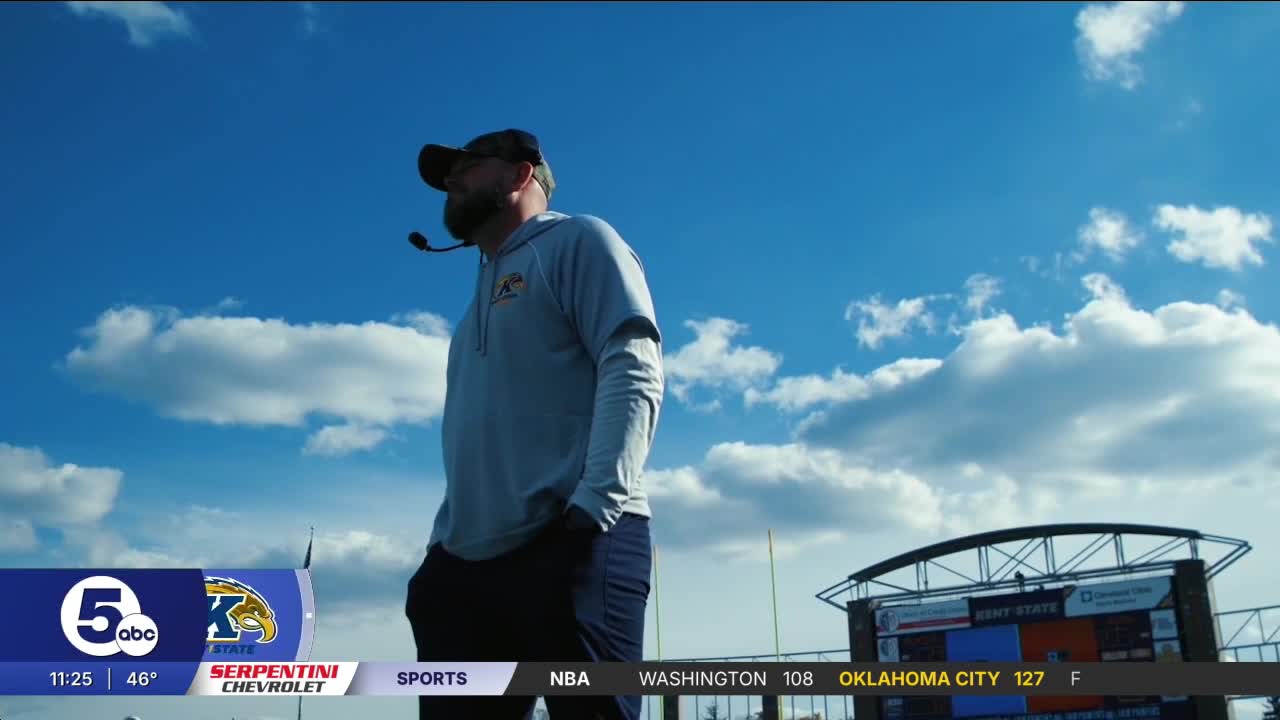 KENT, Ohio — It's been a whirlwind few months for Cleveland native Mark Carney, but as he continues leading the Kent State Football program into what they hope will be a successful turnaround, he gets to do it without an asterisk on his title. Carney is no longer the interim head coach of the Golden Flashes. He's simply: Head Coach.