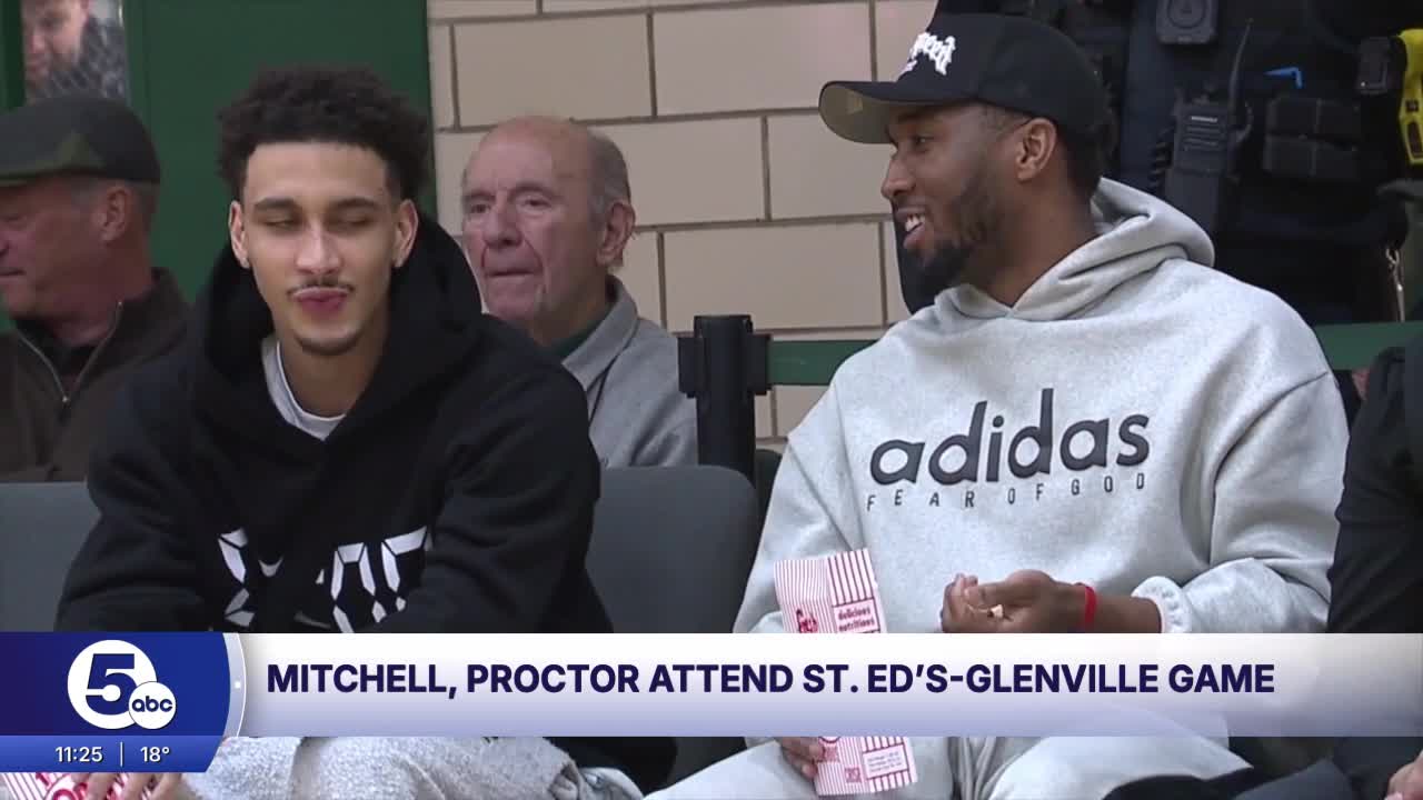 LAKEWOOD, Ohio — It's no secret that Cleveland Cavaliers superstar guard Donovan Mitchell loves checking out local high school basketball games any chance he gets. News 5 has covered him out in the community often over the years he's been here, and that continued Saturday as Mitchell and some other Cavs company got out to Lakewood to watch the St. Edward-Glenville game.