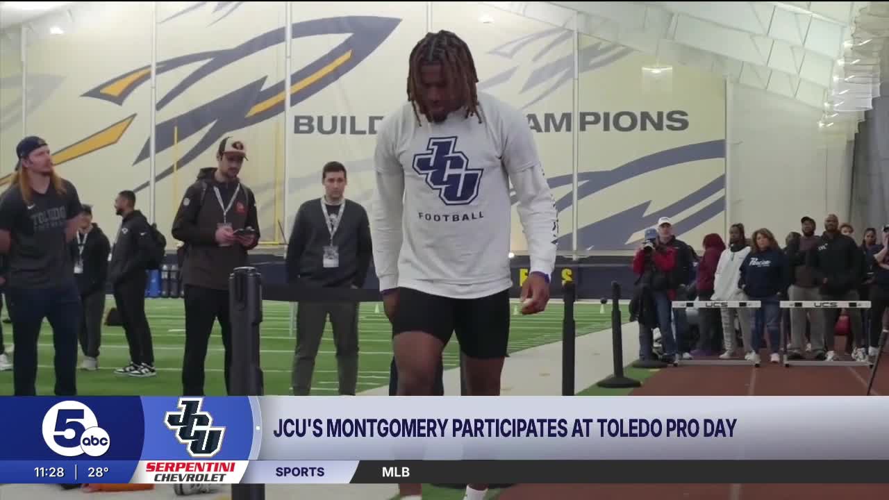 Montgomery made the trip from Texas, where he calls home, back to Ohio, which has become a second home. Inside Toledo's Fetterman Training Center, the John Carroll University receiver took the field for testing and timing.