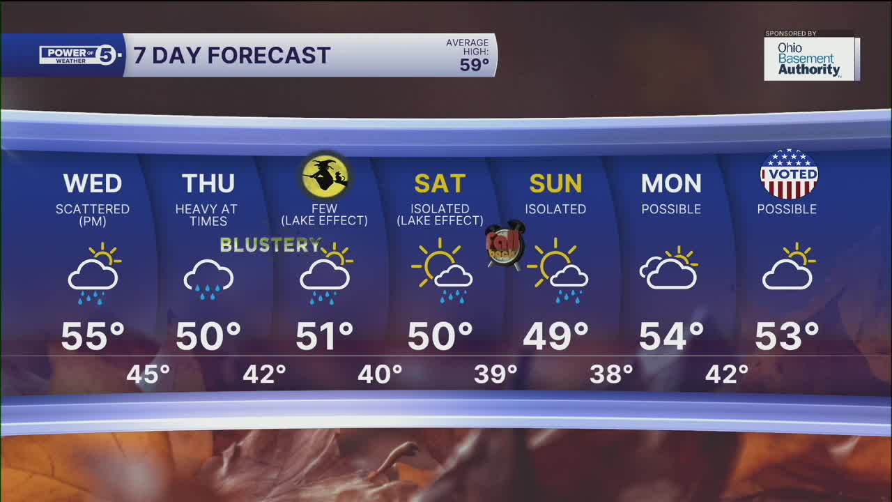 CLEVELAND — Today was beautiful! Tons of sunshine with seasonable temperatures. It was a breezy day, though, and winds will remain elevated for the next several days, with the strongest winds on Thursday. It will continue to be blustery on Halloween.