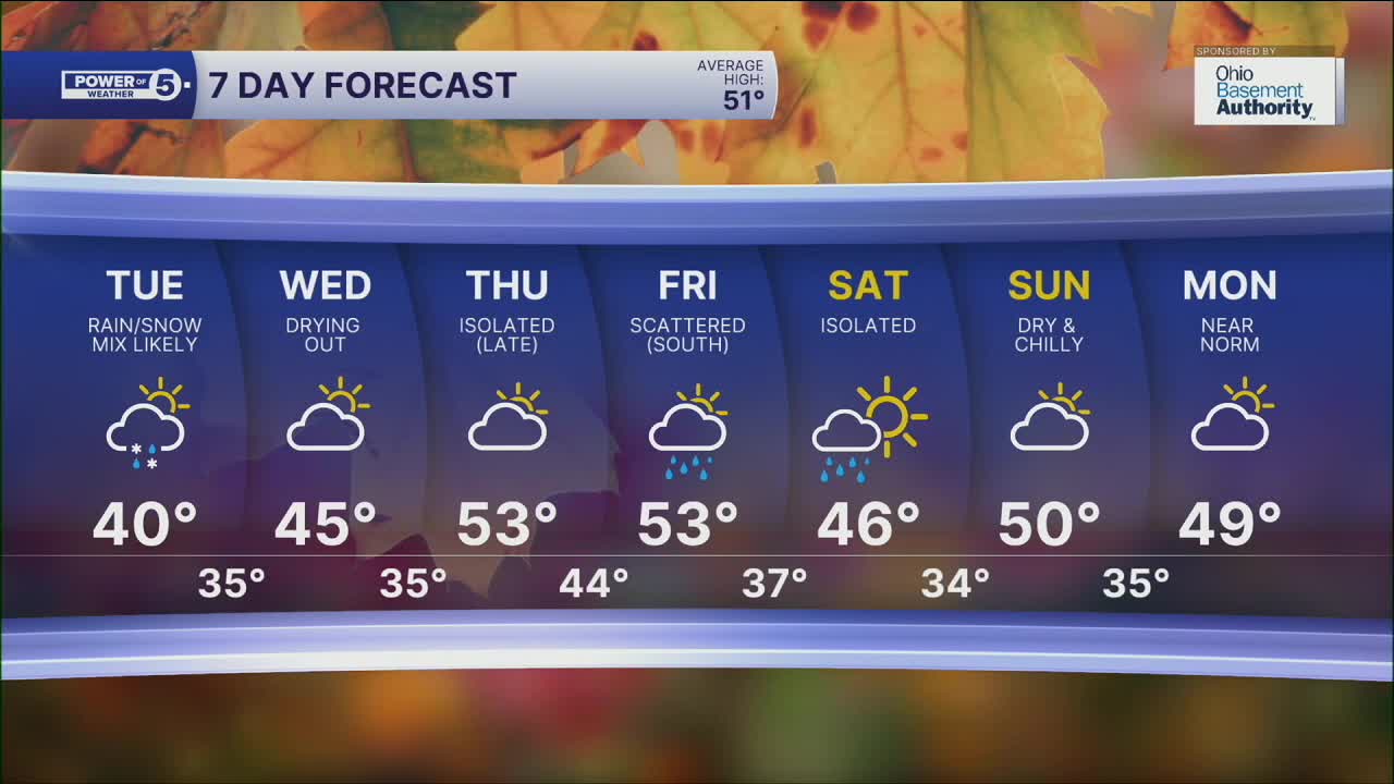 CLEVELAND — After a chilly and breezy day, it will be a COLD but calm night. Plan for temperatures in the upper 20s and low 30s overnight! Meanwhile, winds are decreasing, while clouds are increasing ahead of our next system that will bring a wintry mix and chilly rain to NEO on Tuesday.