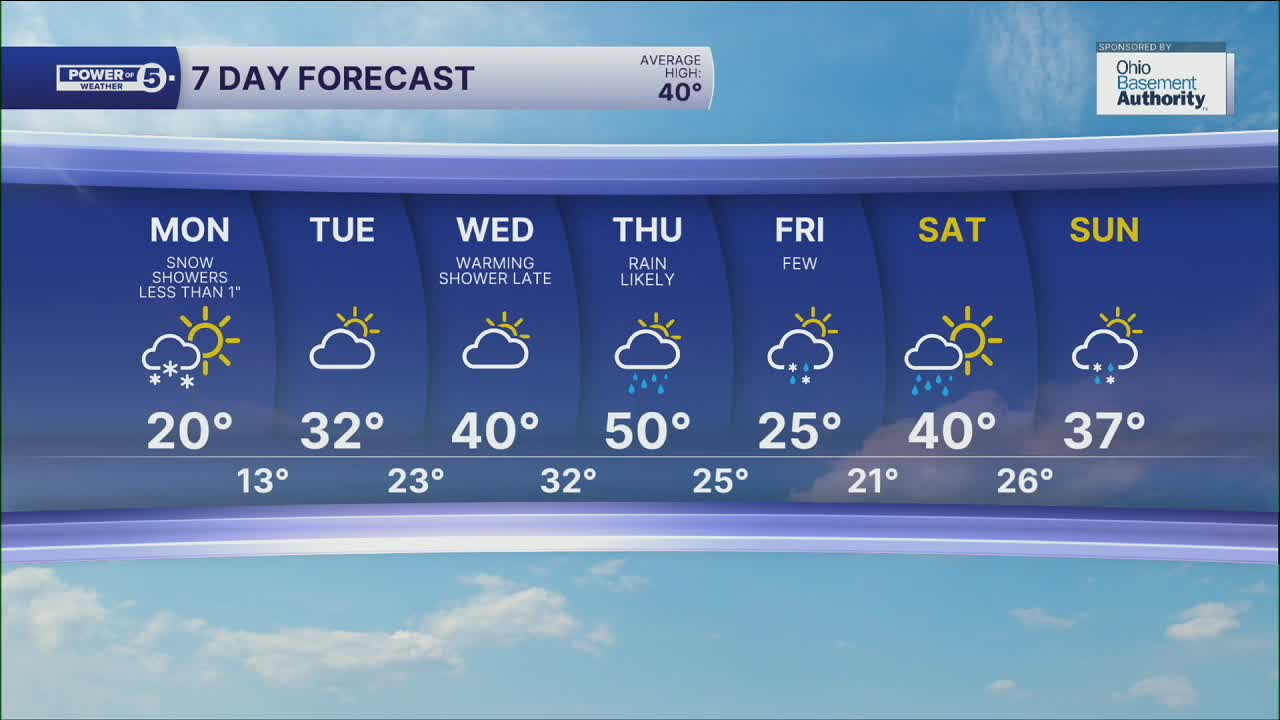 Monday: Lake effect snow showers. Still cold. | High: 22º