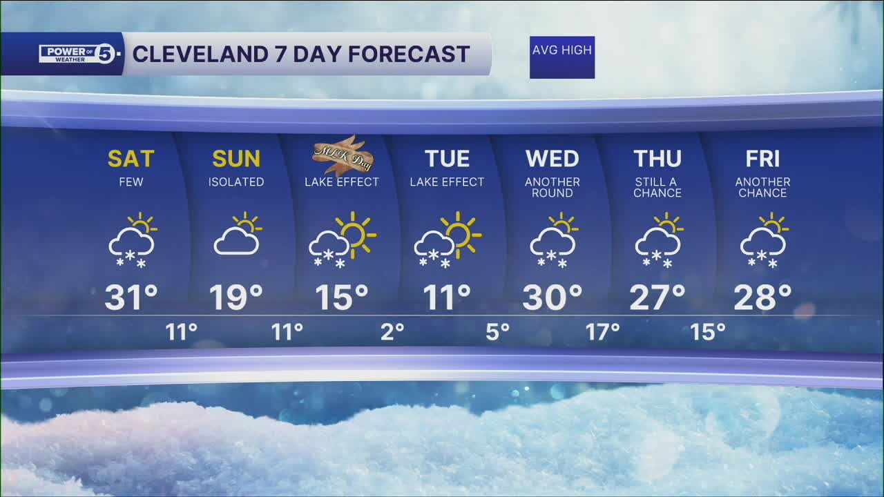 CLEVELAND — It will stay in the upper 20s to near-30 tonight. A few snow showers will be possible, especially in our southern communities. Accumulations will be under 3 inches.