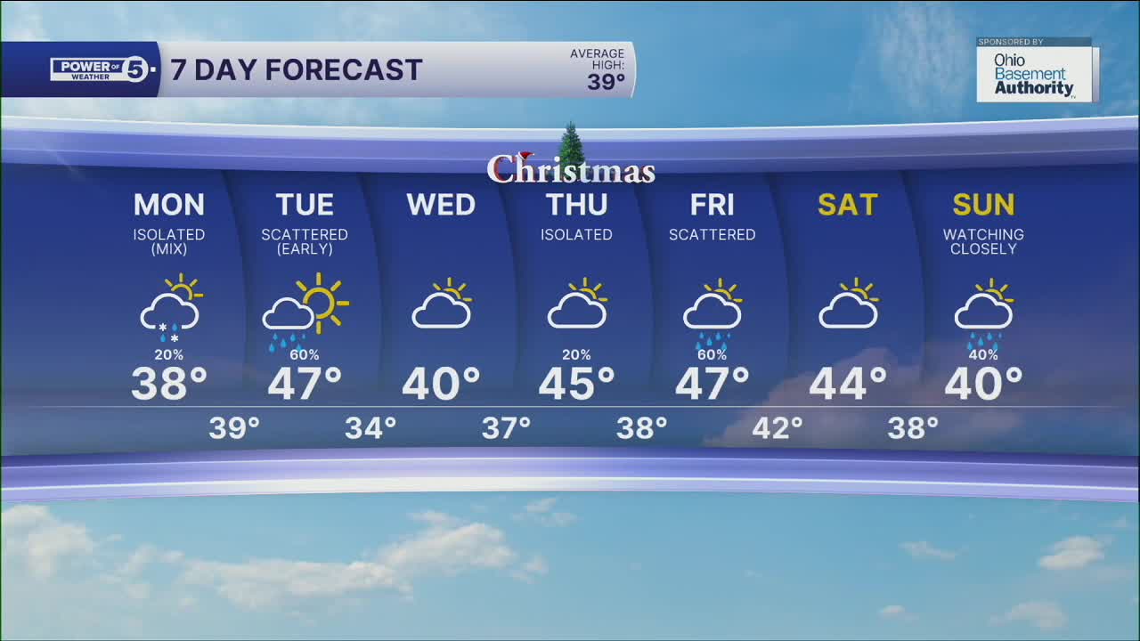 Christmas Day: Isolated morning showers. | High: 45º